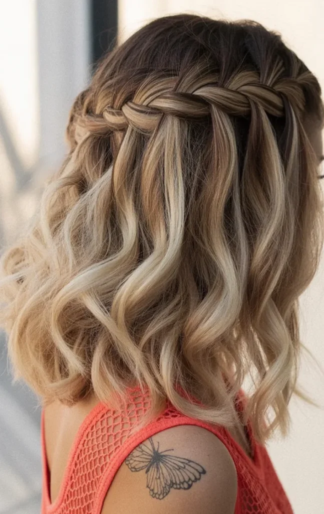A braided crown flowing into soft waves feels almost storybook romantic. It’s the kind of style that makes you stand a little taller—elegant without trying too hard. There’s movement, softness, and just enough detail to make it feel special.