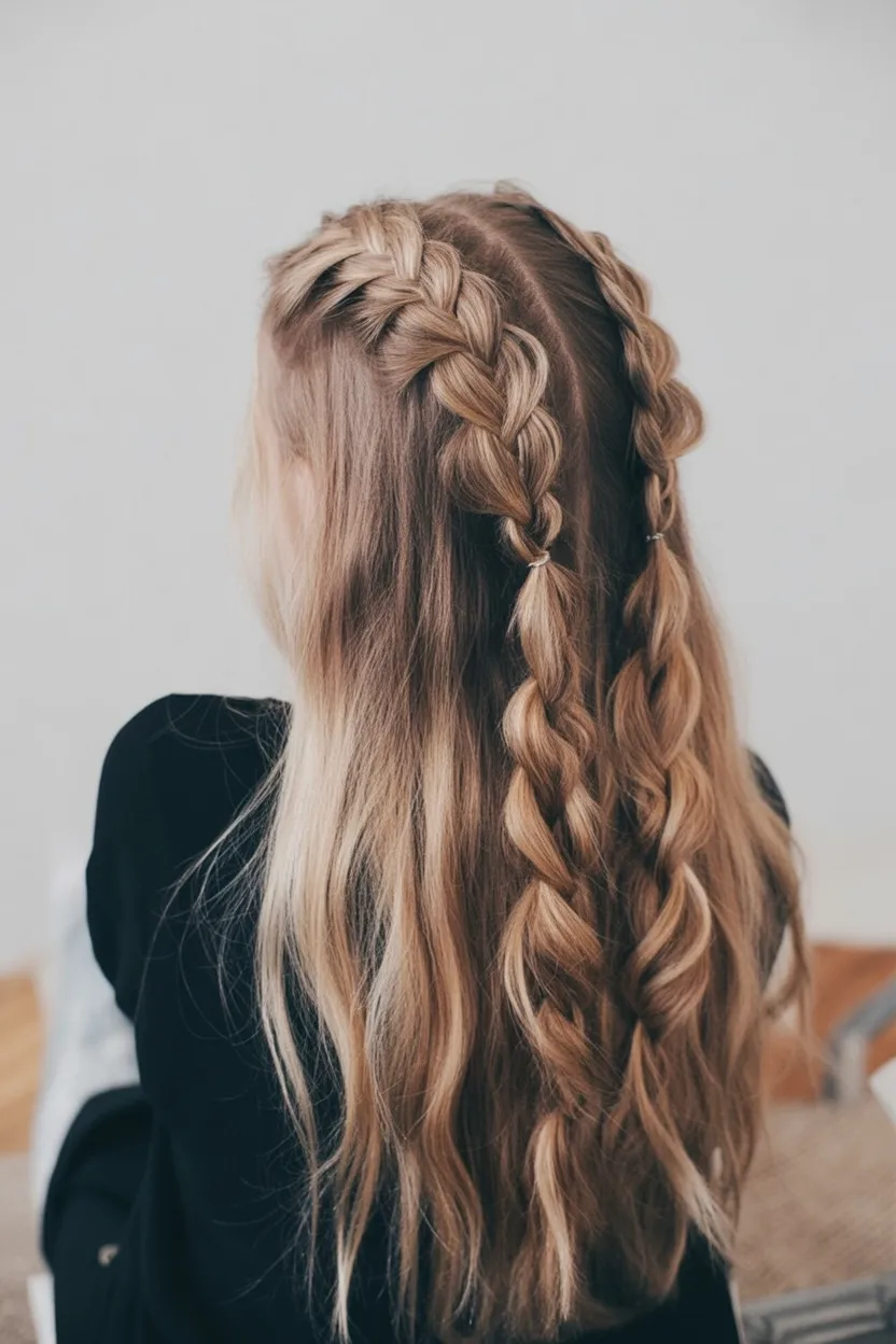There’s something undeniably magical about long, softly woven braids cascading down your back. This look feels like the grown-up version of the styles we tried in the 90s, only now it’s more polished and more intentional. It gives that effortless “I woke up like this but better” energy—romantic, feminine, and just a little whimsical. It’s the kind of hairstyle that turns a regular coffee run into a moment.