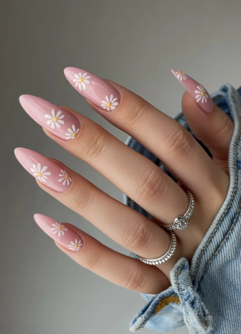 12. Soft Pink Daisy Almond