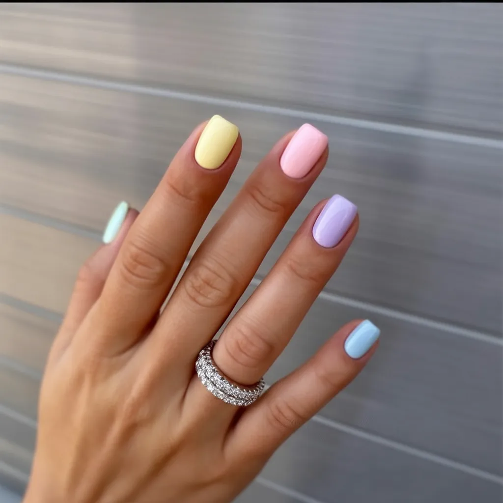 Soft pastel nails in pink, lilac, mint, and butter yellow just scream spring. This square, short look is simple, clean, and effortlessly polished. It feels like opening your closet and swapping heavy sweaters for light layers and airy fabrics. Sometimes you don’t need intricate designs—just the right Colors.
