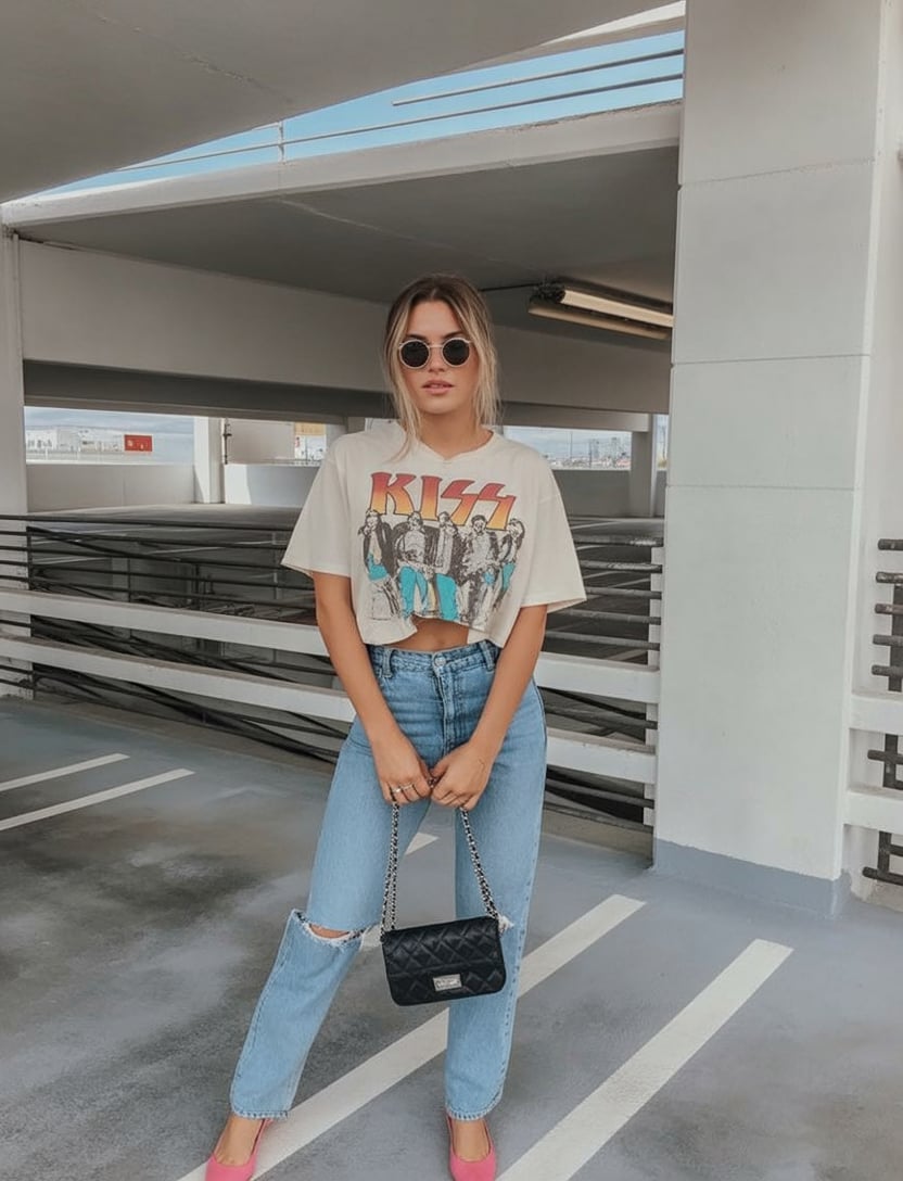 This look taps straight into timeless concert energy. A cropped band tee with high-waisted jeans feels nostalgic in the best way, like something you’ve worn to concerts for years—but refreshed for 2026. It’s confident, cool, and slightly edgy without crossing into try-hard territory.