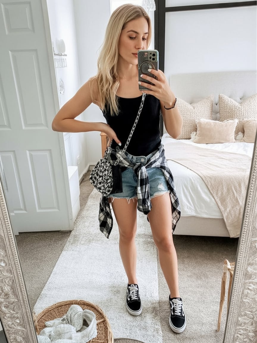 This outfit is pure simplicity done right. A fitted tank with denim shorts feels timeless and relaxed, especially when styled with sneakers. It’s the kind of look that lets you focus on the music, not your outfit.