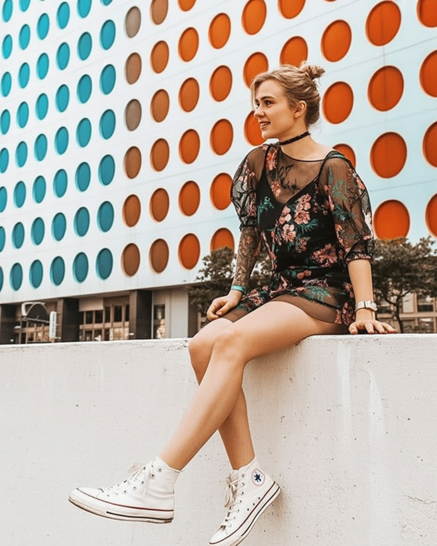 6. Floral Dress with Sneakers for an Urban Concert Feel