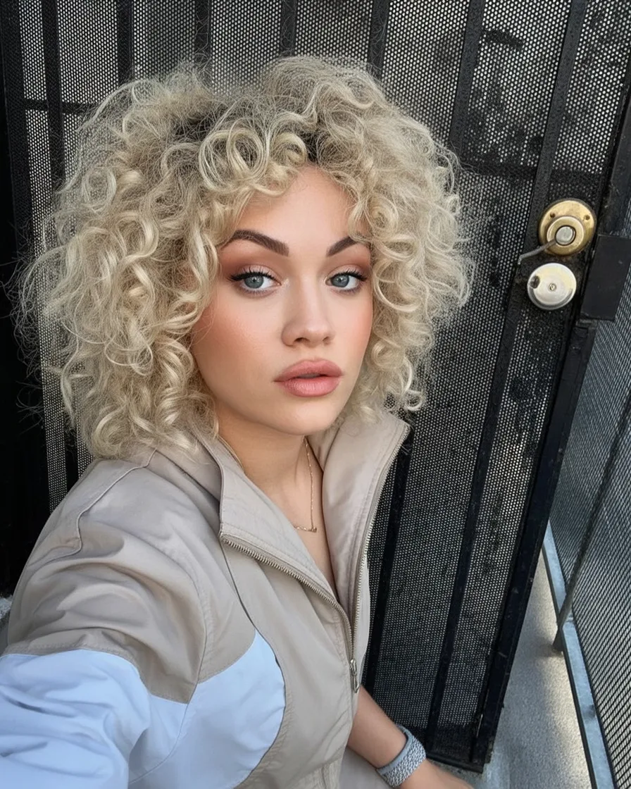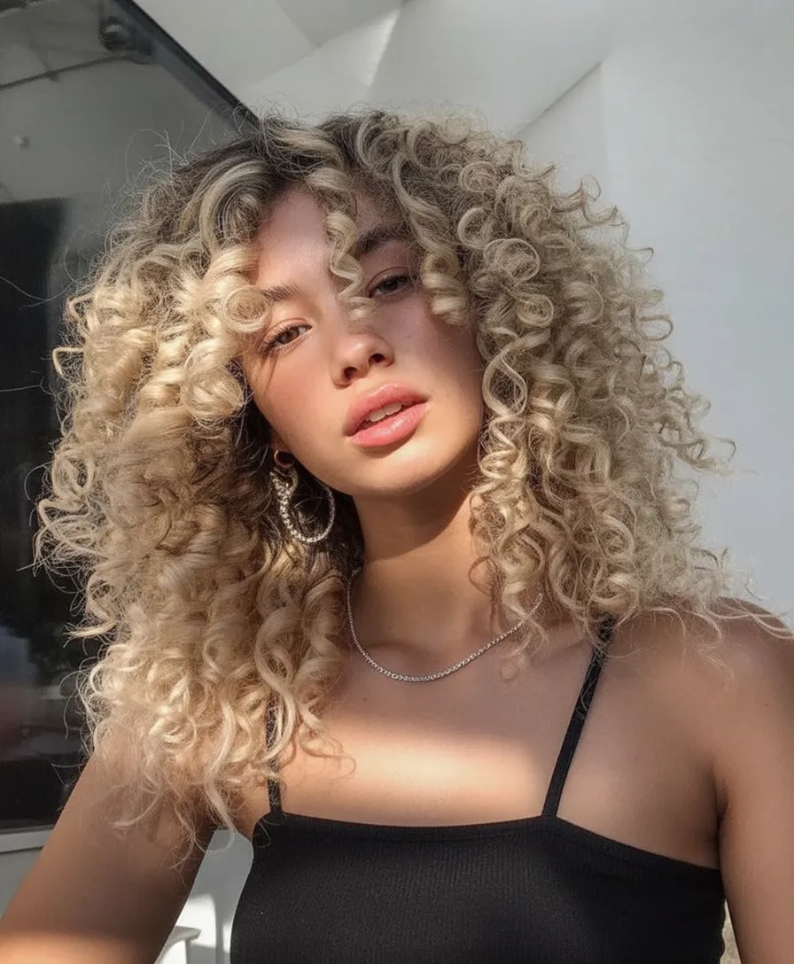 10. Voluminous Curly Blonde with Soft Shape