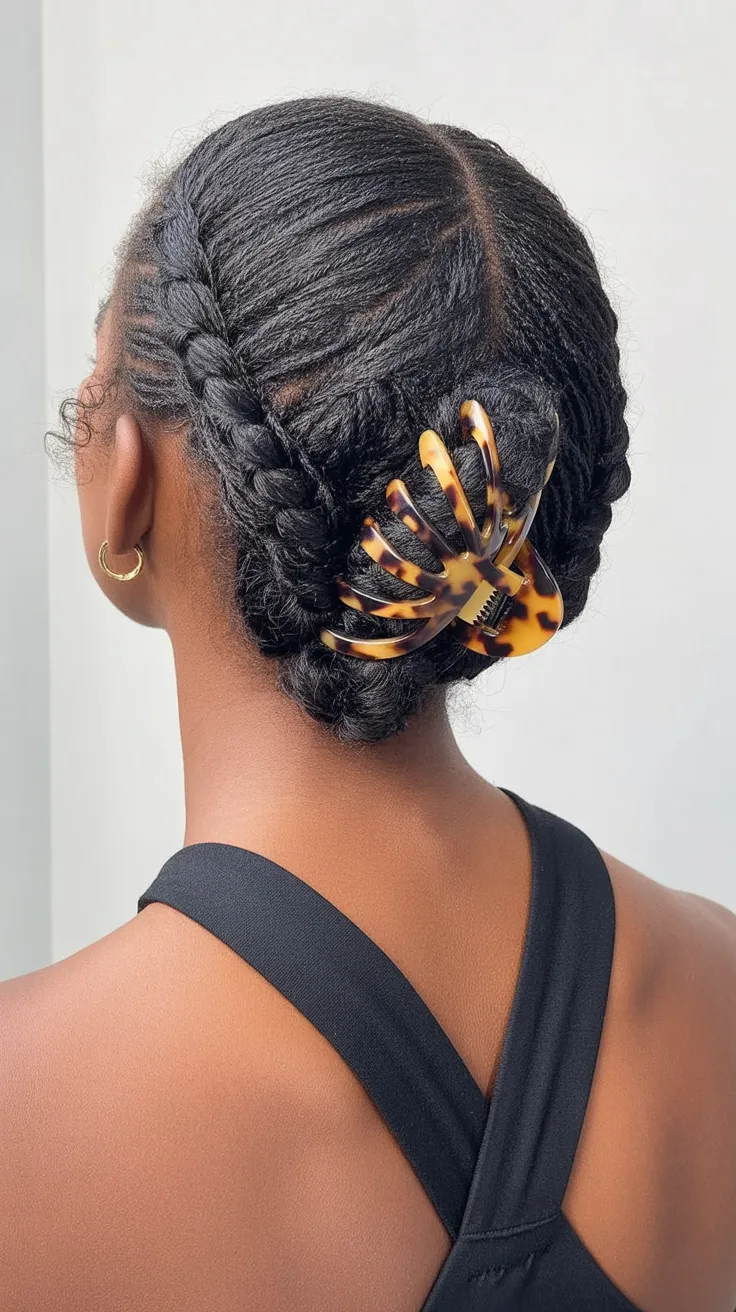 5. Braided Low Updo for Natural Texture