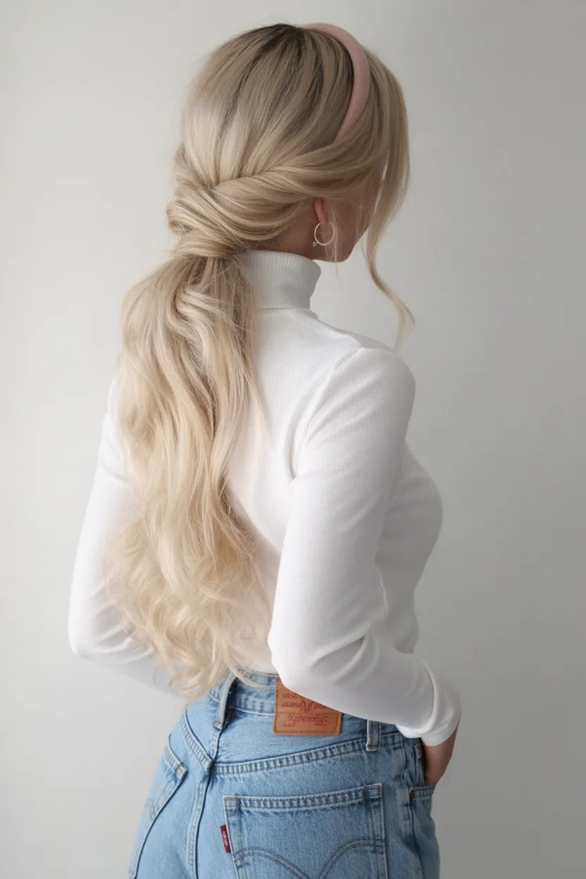 Best suited for long hair with natural waves or texture, this look is incredibly easy to recreate. It’s ideal if you want something fun and low-pressure that still feels styled. The accessory does most of the work, making this a great go-to on busy days.