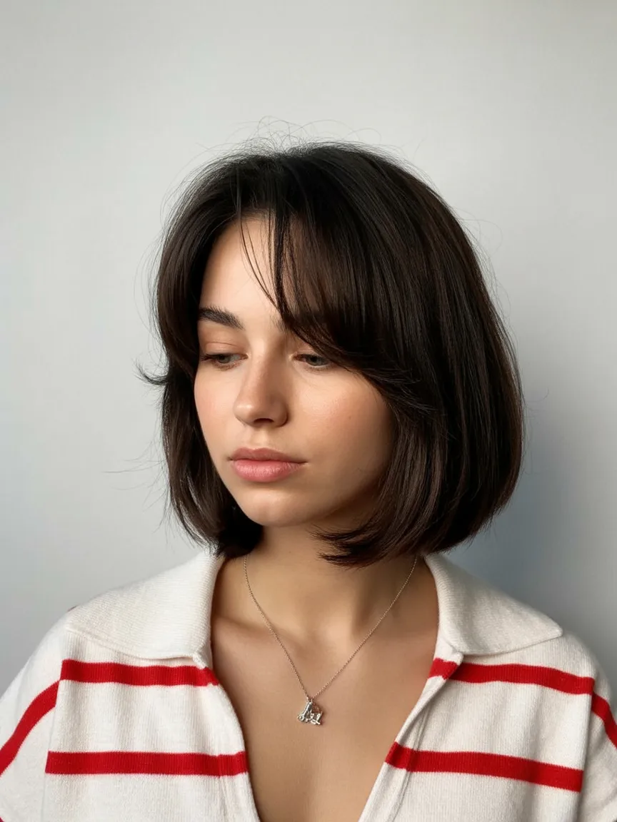 18. Short Dark Bob with Soft Fringe