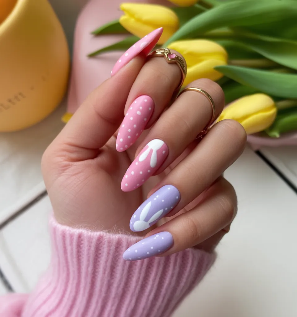 15. Pastel Bunny Almond Spring Nails