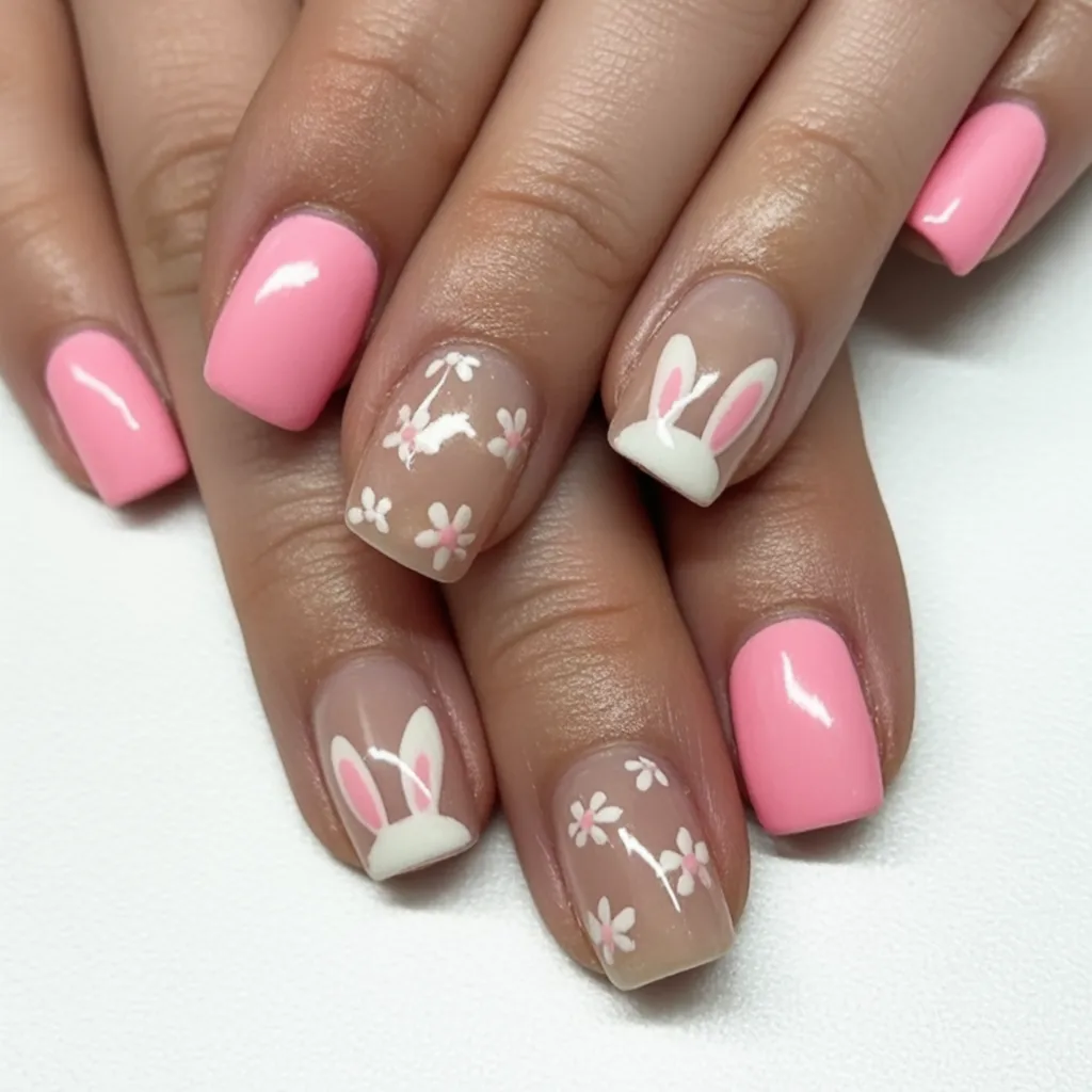 2. Soft Pink Square Bunny Nails
