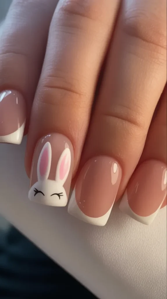 6. Classic Bunny French Tip Nails