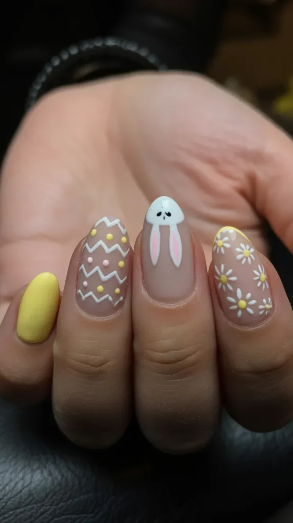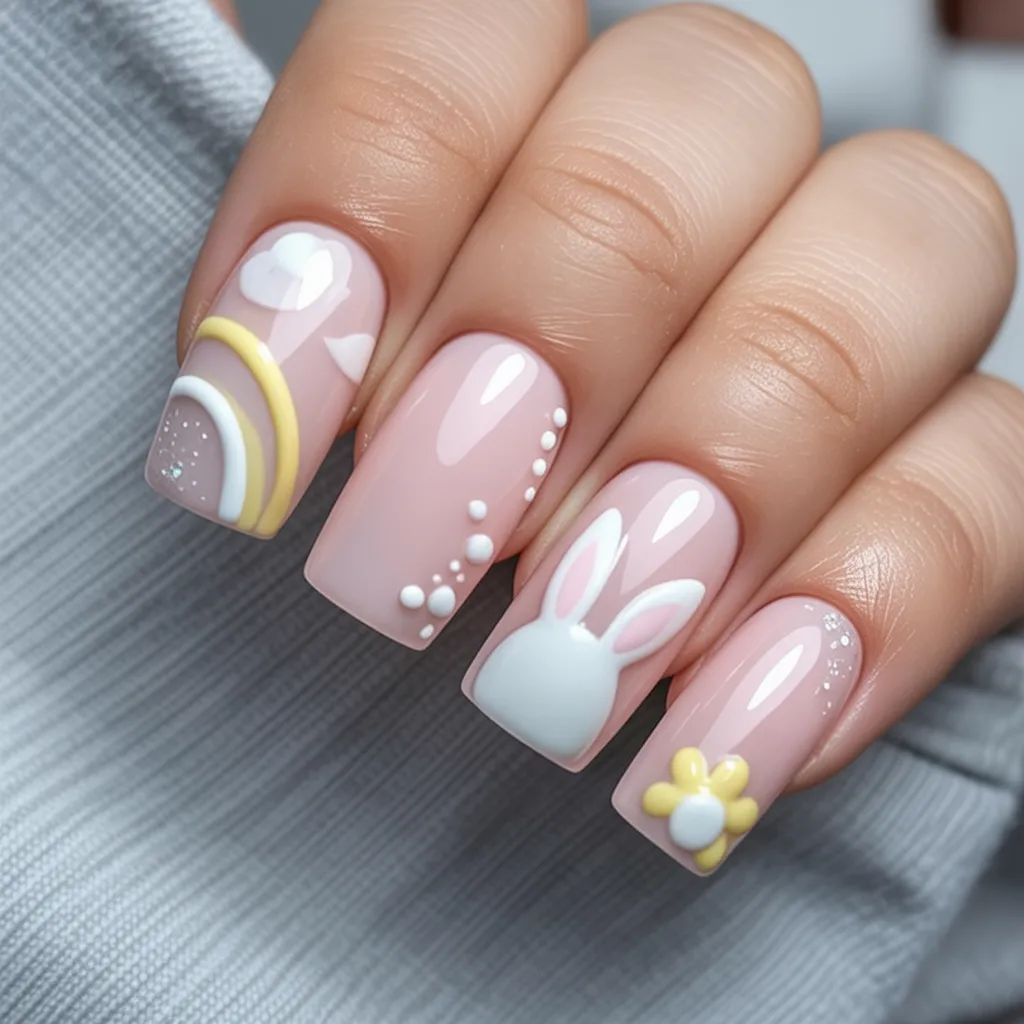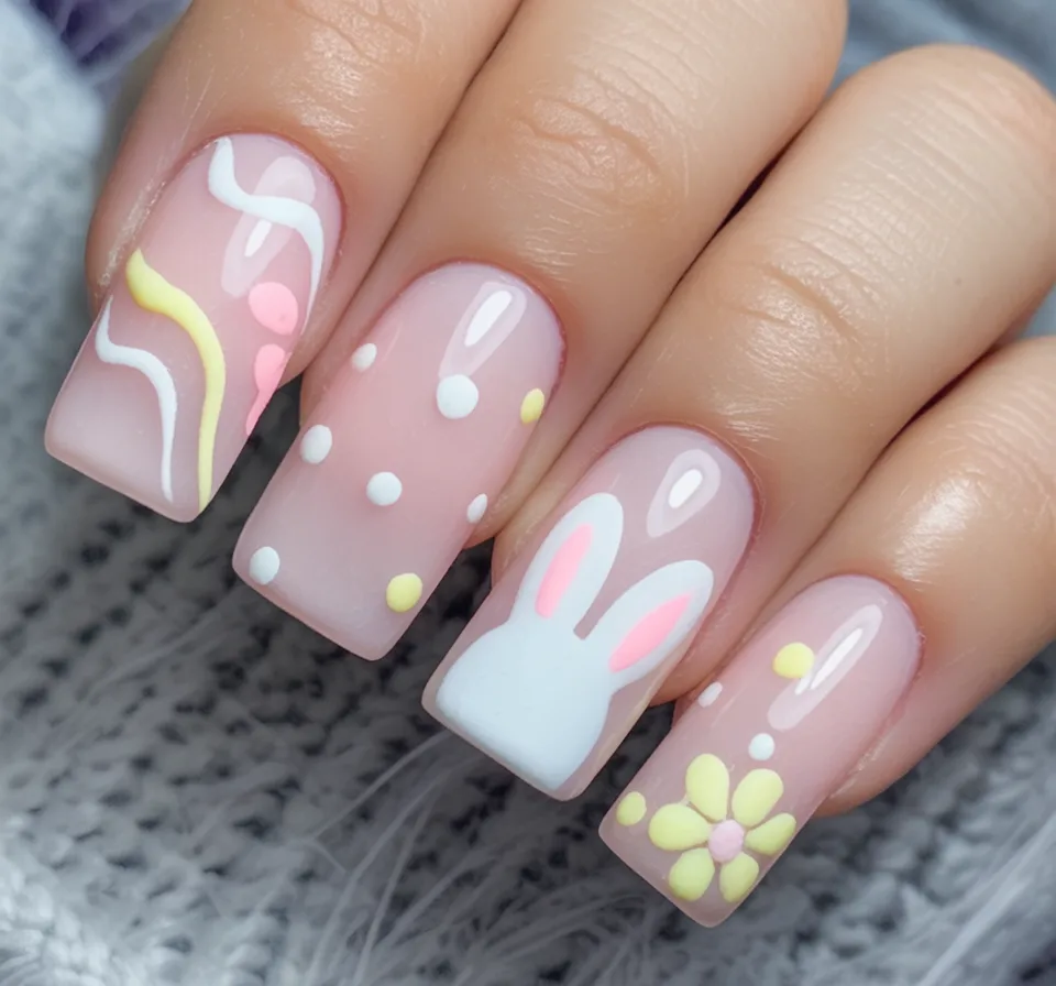 3. Pastel Meadow Bunny Art Nails