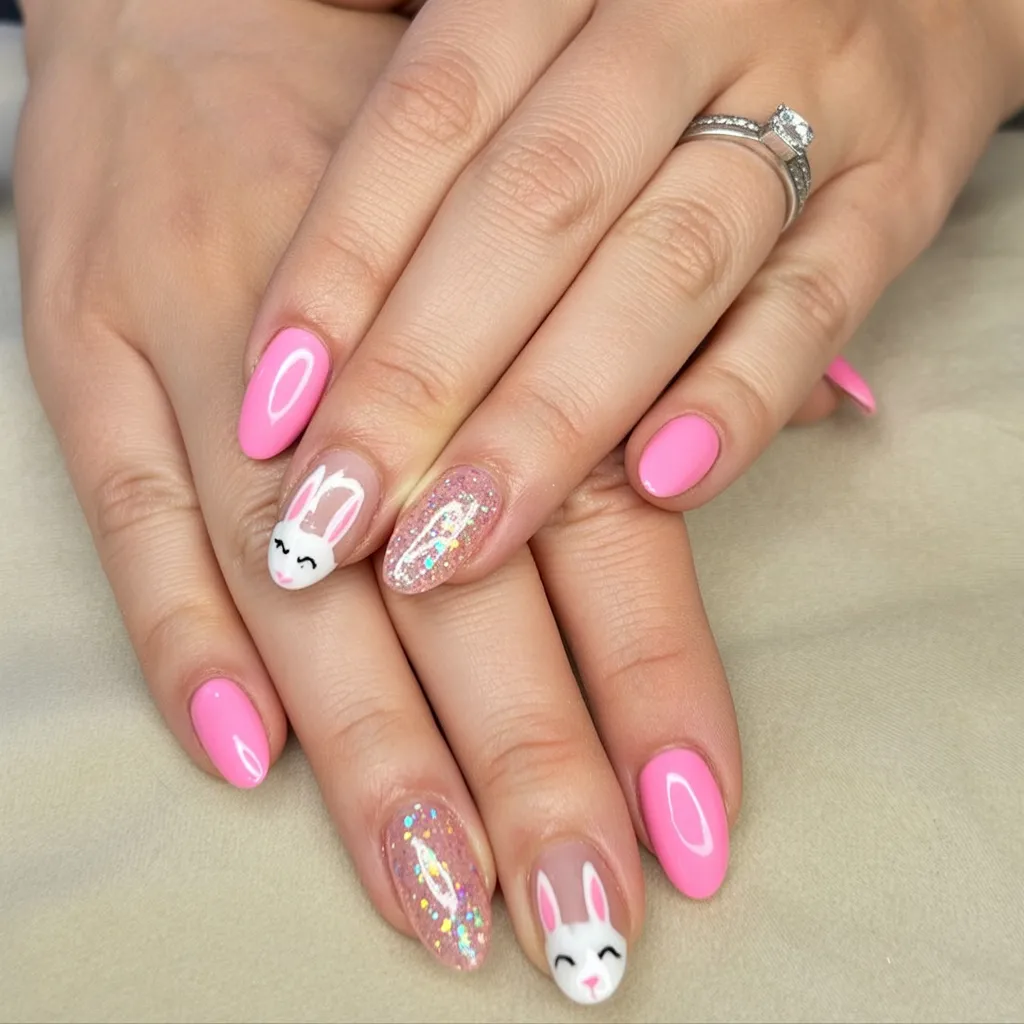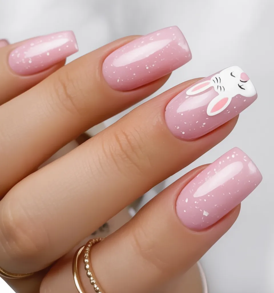 1. Glossy Pink Bunny Sparkle Nails