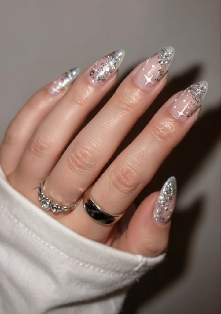 Something about glitter nails just feels eternal- regardless of the time of the year they always make your hands a little magic. An overall trend toward 2025-2026 is all about the fusion of sparkle with personality: soft iridescent shimmers, large chunky glitters, and fancy gold or silver accents to make the most basic outfits look fancy. Whatever kind of nails you like, either short and classy or long and acrylic, there is a glitter design in this collection that will ensure you feel cool, confident, and a bit of the playboy. Imagine it as your nail jewelry a mood-booster instantly every time you peep at them in the light.