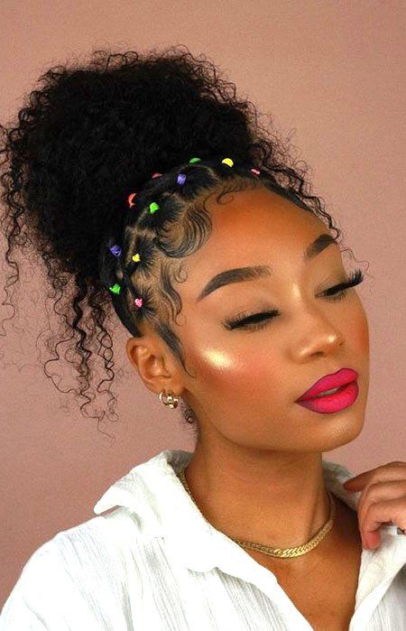21. High Puff with Colorful Mini Braids