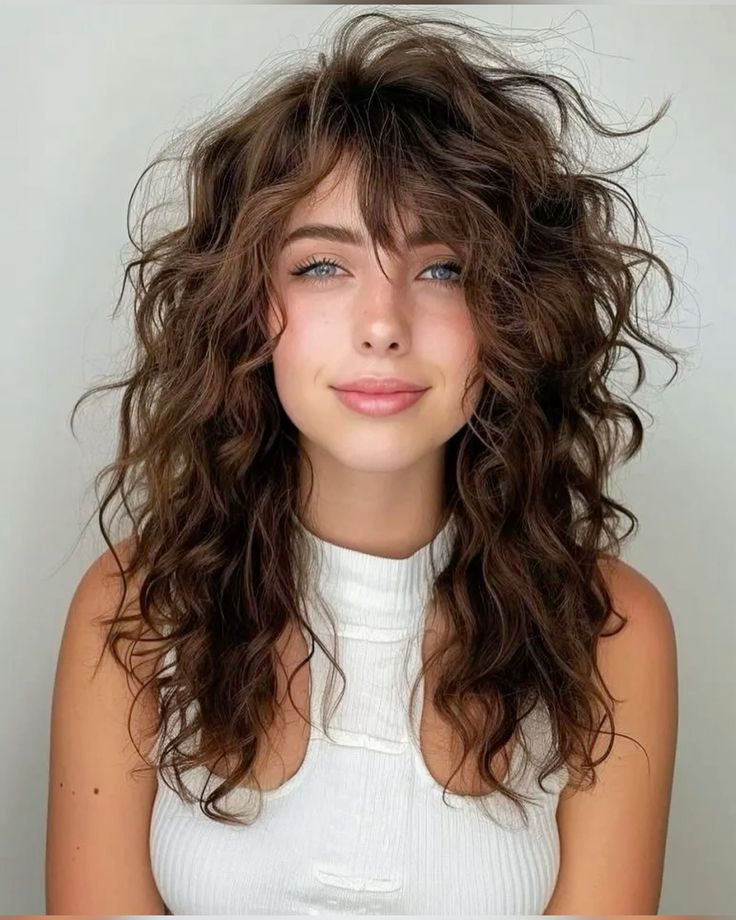 The shag haircut has made a big comeback, tailored now for natural hair with built-in texture and volume. Adding bangs to a curly shag frames the face beautifully and can soften the overall look, making it versatile and modern for any age and face shape.