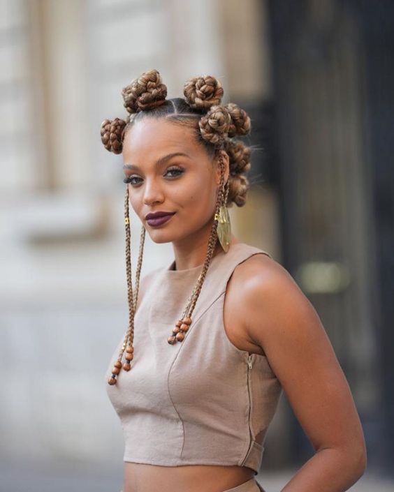 Double buns, or “space buns,” are playful and youthful. This hairstyle is perfect for those with natural hair who want to add a fun twist to their look. Embellish the buns with accessories like beads, rings, or colorful threads to make the style pop even more and give it a personalized touch.