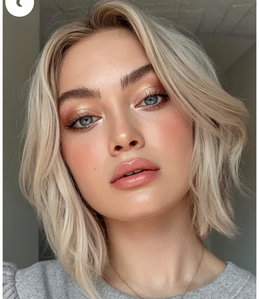 This bob with natural waves strikes a perfect balance between youthful charm and modern sophistication. The soft waves add texture and body to the hair, making it look lively and carefree. The subtle blonde highlights brighten the face, enhancing its features. This hairstyle is complemented by trendy, thin-framed glasses, making it a great choice for young professionals or anyone looking for a fresh, easy-to-maintain style.