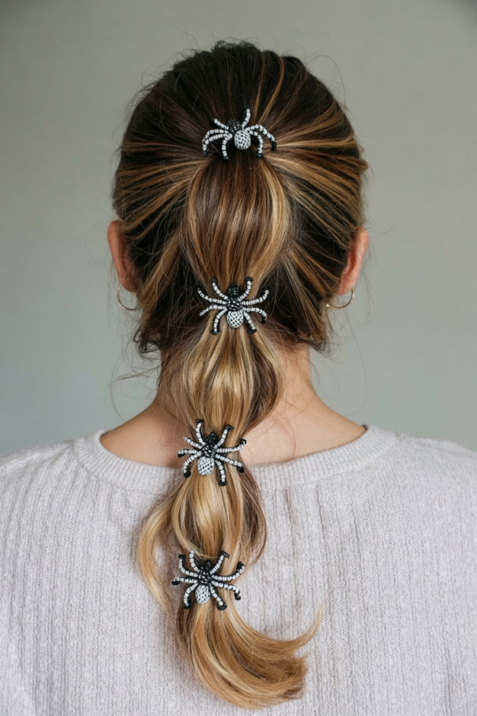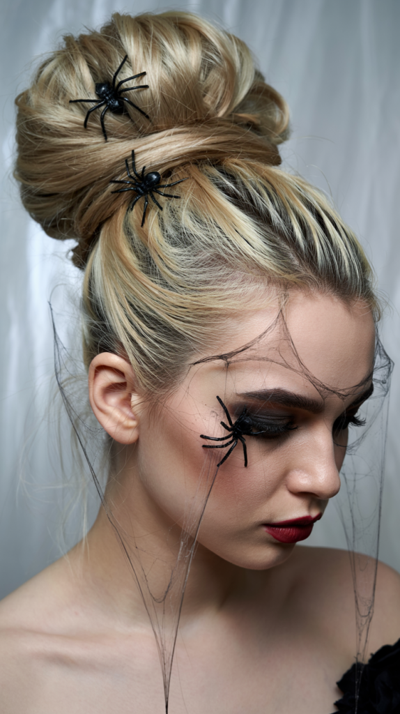 Great for women with medium-to-long hair and a love of subtle drama. Add volume at the crown, secure your ponytail, then clip in novelty spiders. It’s simple but makes a dramatic impact—especially under soft lighting.