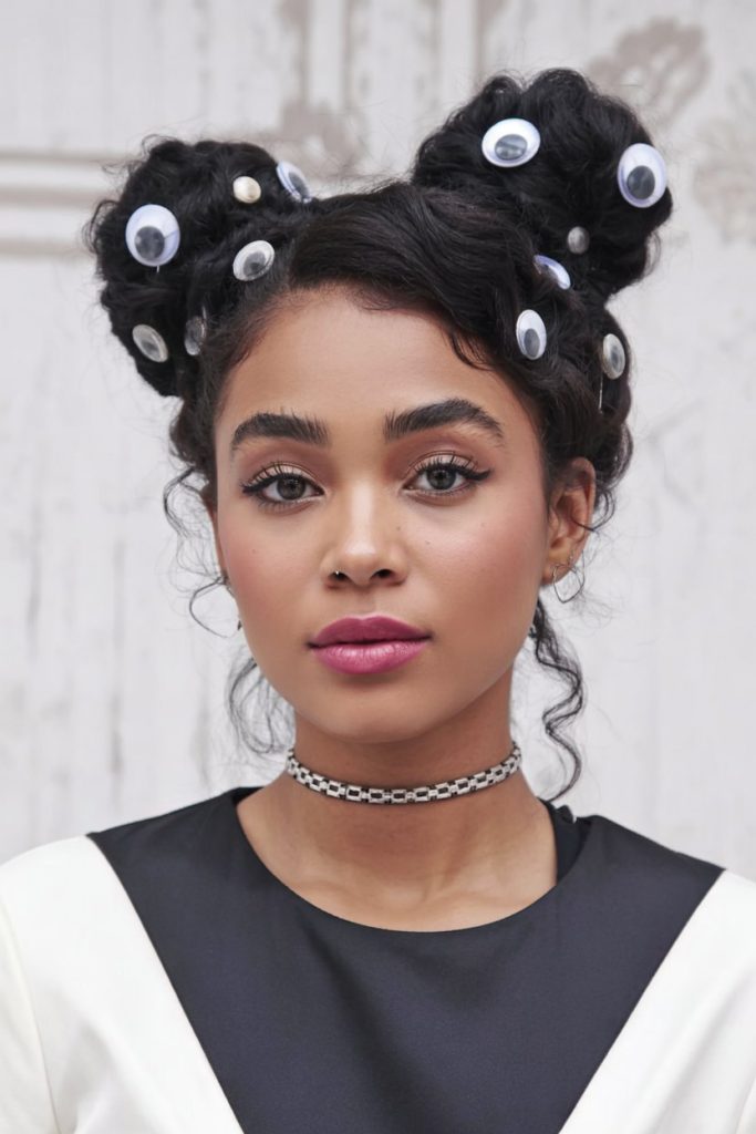 3. Googly-Eyed Double Buns