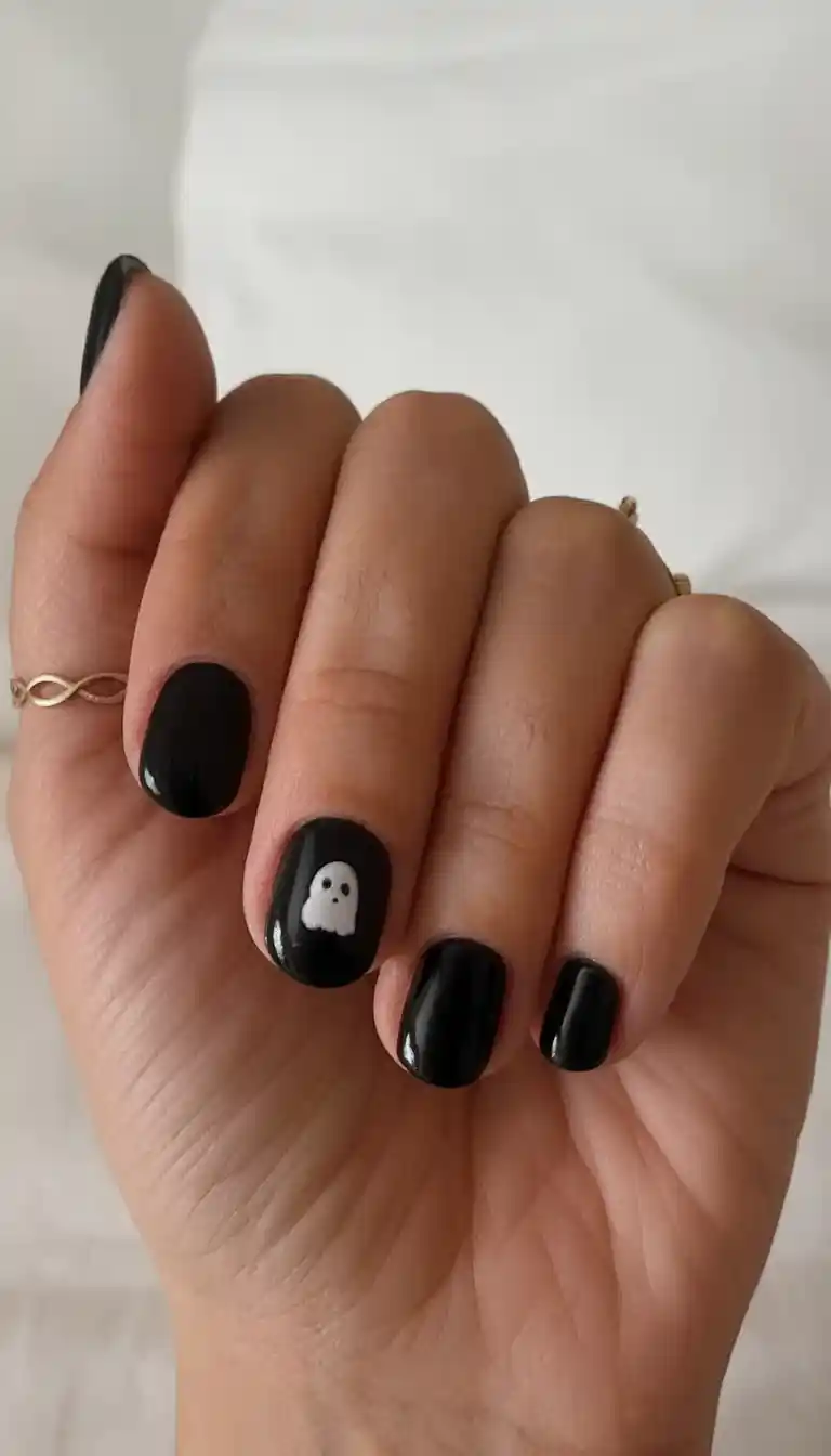 It is the timelessly adorable element of a jet-black nail and one little white ghost on it. It is creepy but at the same time adorable in the subtlest of forms. The much-polished black finish lends a well-groomed touch and that one ghost exudes a sufficient amount of Halloween without cawing costume party.