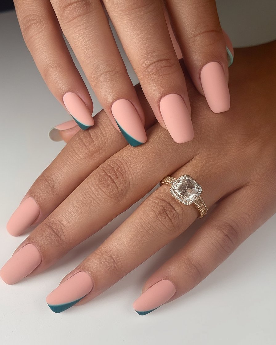 7. Blush and Teal Diagonal Tips