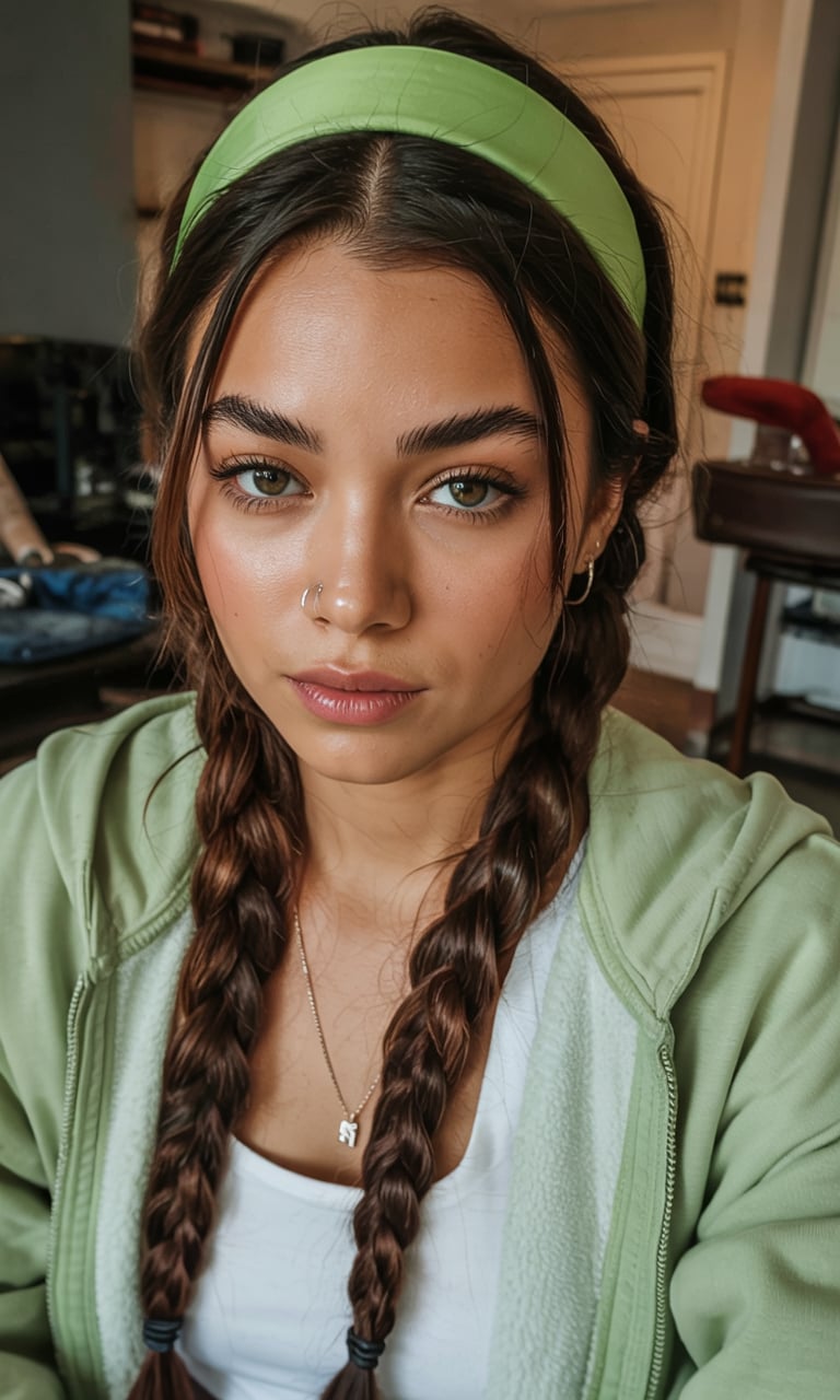 This fresh green headband paired with long braids feels like a grown-up take on schoolgirl hair—playful, but in a very 2026 way. The color brightens the complexion, while the twin braids keep everything neat and structured. It’s the sort of look that makes you feel younger without trying to look like a teenager, which is a sweet spot most of us are aiming for.