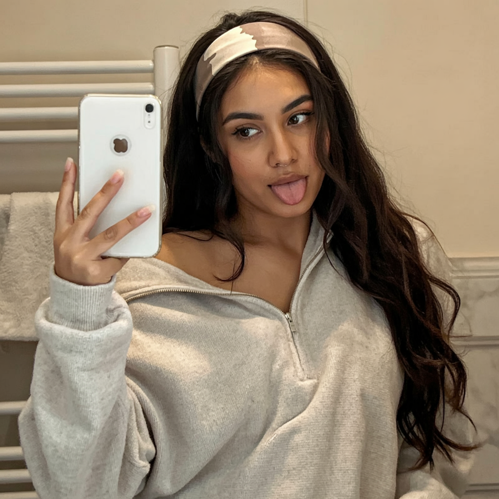 There’s a flirty, off-duty charm to this long, tousled style paired with a soft taupe headband. The waves tumble over the shoulders in that perfectly imperfect way, while the headband keeps the top smooth so the length can do all the talking. It feels playful and a little cheeky, the kind of hair that makes you want to take a few extra selfies just because you’re enjoying your own reflection.