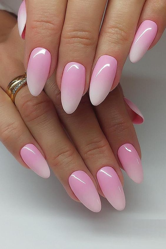 Ombre nails almond shapes are in vogue, with a focus on pastel gradients that enhance the elegance of the almond shape.