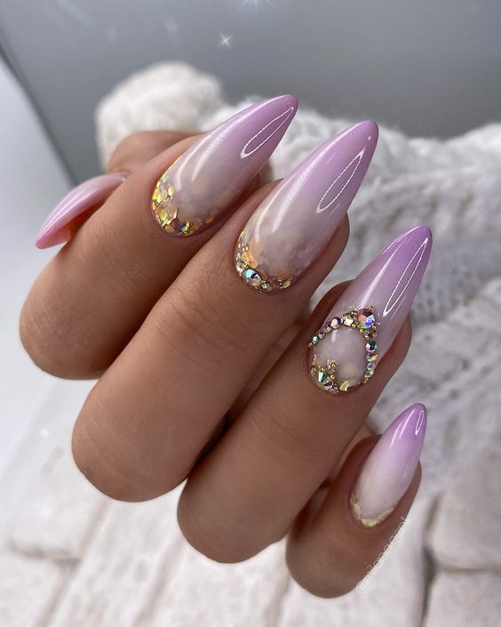 Ombre nails with rhinestones add a touch of luxury. This year, the placement of rhinestones is more strategic, creating stunning light-catching effects.