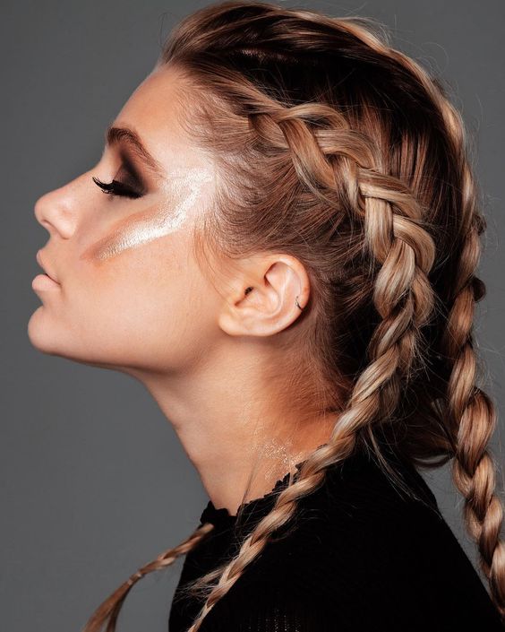 Why settle for one when you can have two? Double French braids offer a symmetrical and edgy look, ideal for a summer concert or a night out.