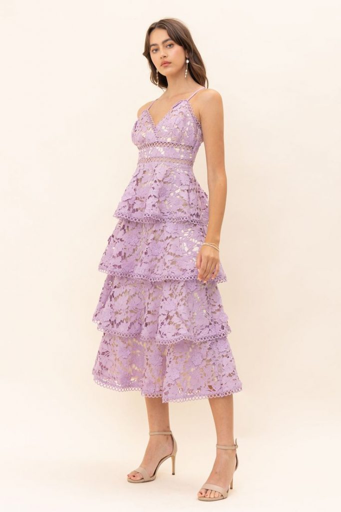 14. Lavender Layers: A Whimsical Tiered Lace Dress