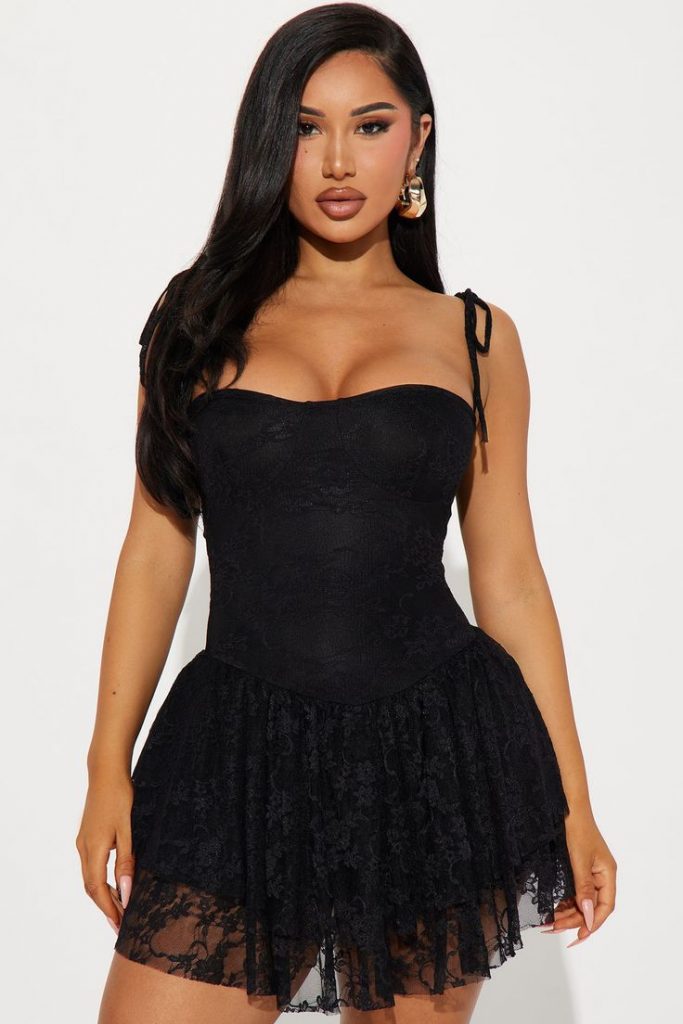 A black lace dress outfit for black women can be utterly breathtaking, especially when it combines a playful skirt with a form-fitting bodice. This particular design is perfect for those who want to embrace their curves while adding a flirty touch. Accessorize with bold earrings and a sleek clutch to pull the entire look together.