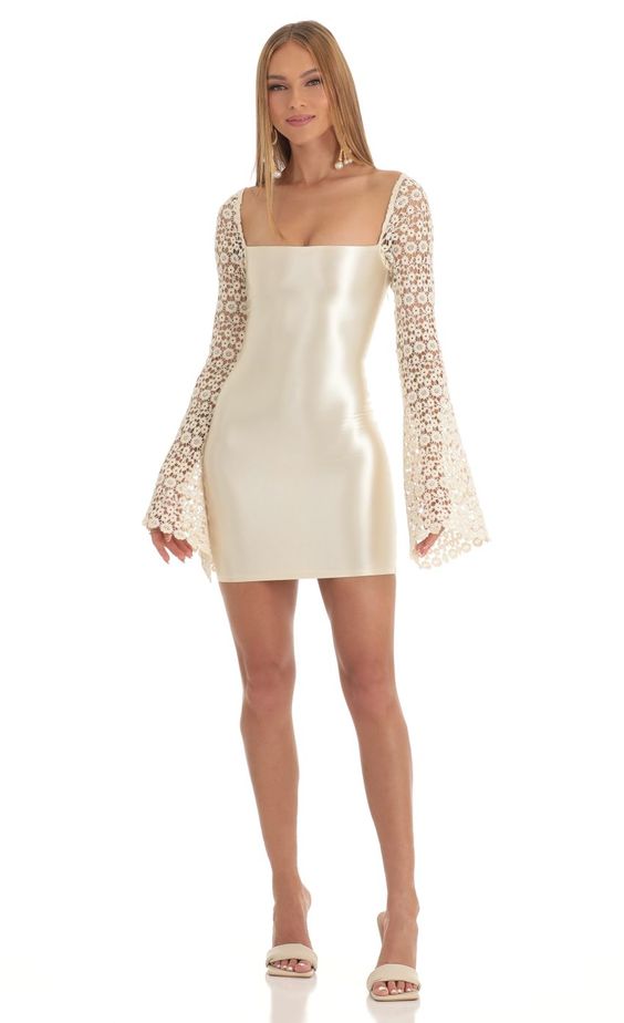 7. Creamy Dream: The Long-Sleeve Lace Mini Dress