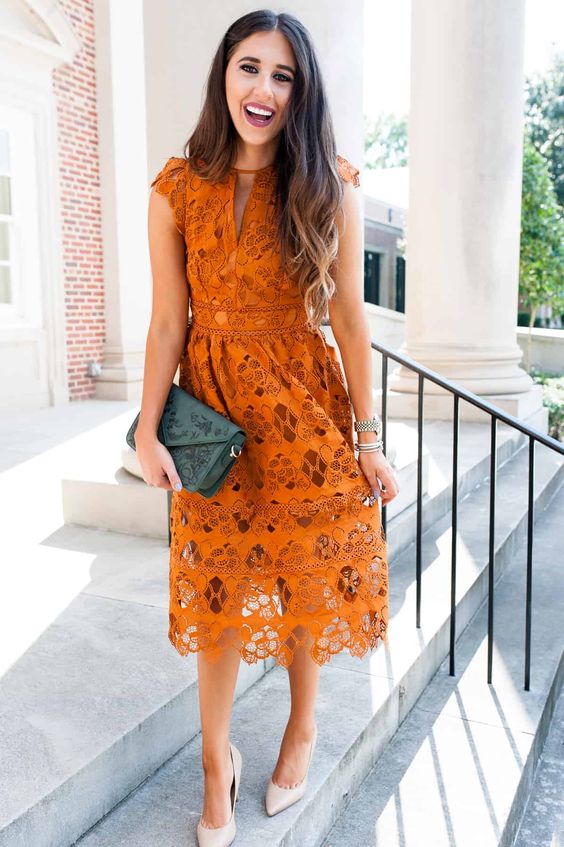 9. Autumn Orange: A Lace Dress Outfit for the Vibrant Soul