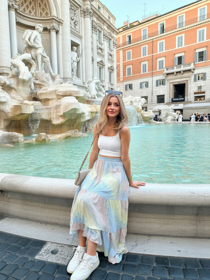 This look feels joyful and carefree, like stopping for gelato just because the mood strikes. It has a playful charm that instantly lifts your spirit.