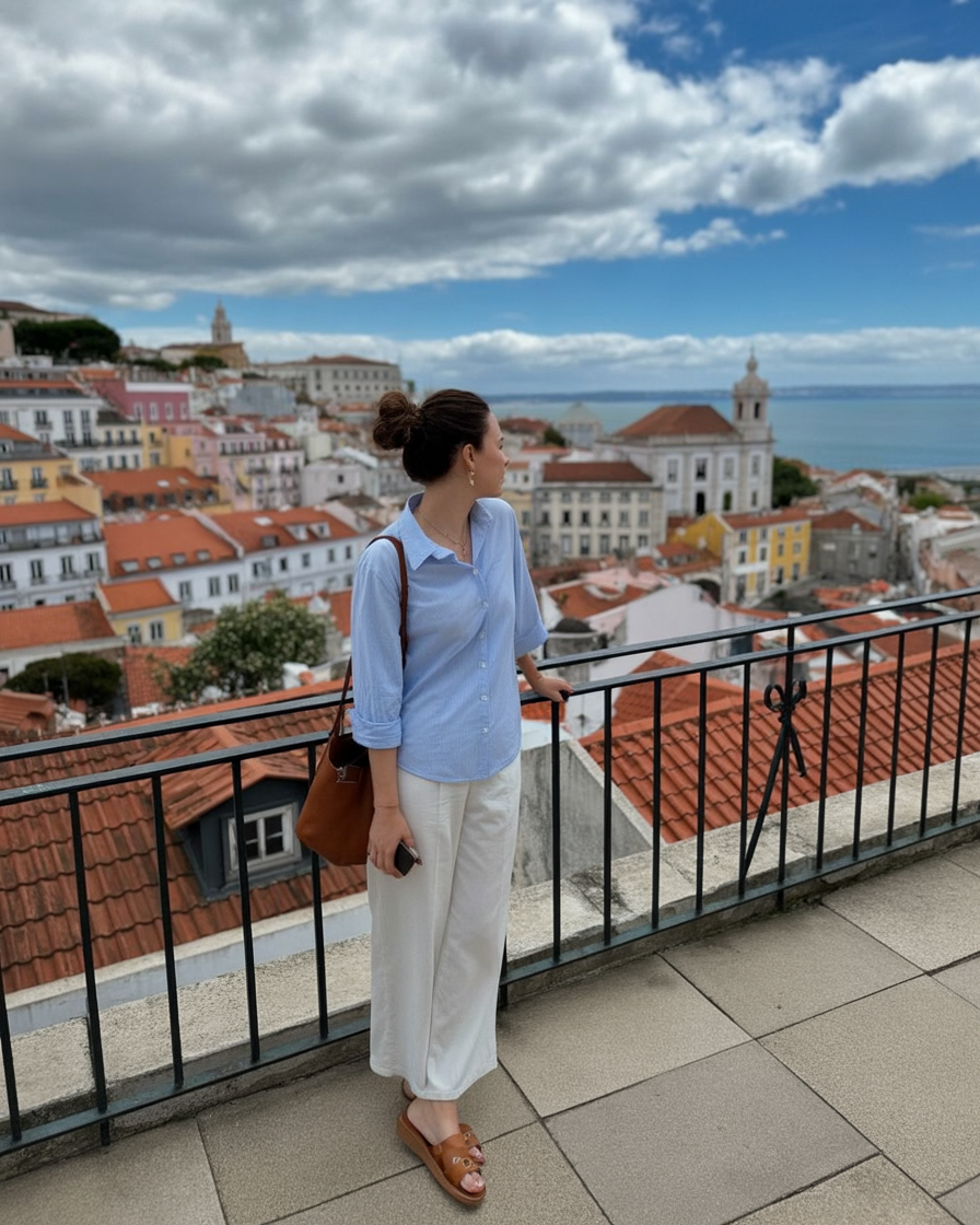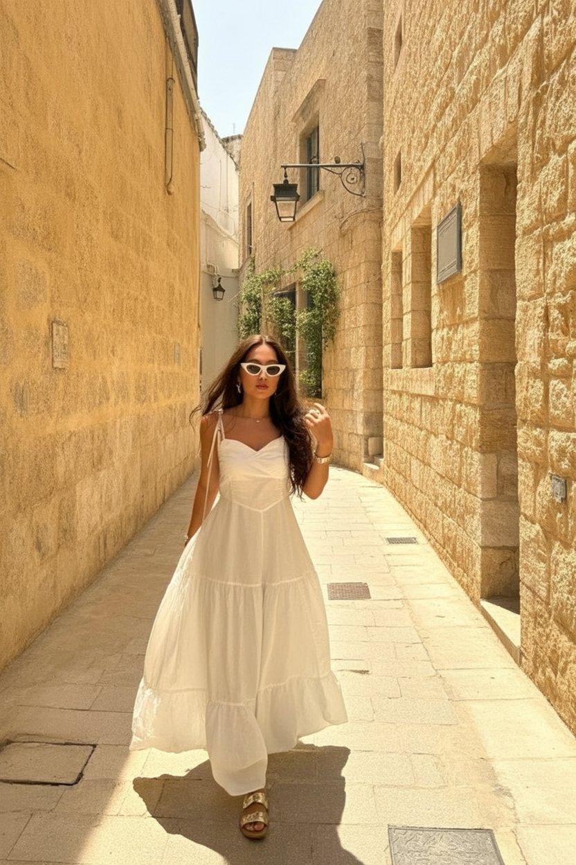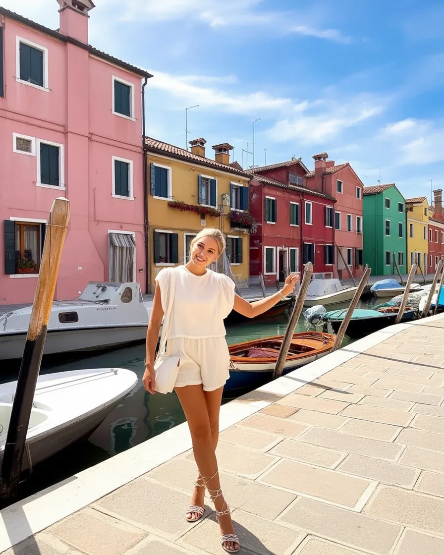 What makes this outfit special is its simplicity. Breathable fabrics and clean lines make it ideal for Venice walks, and it’s a great inspo option for women who want comfort without overthinking style.