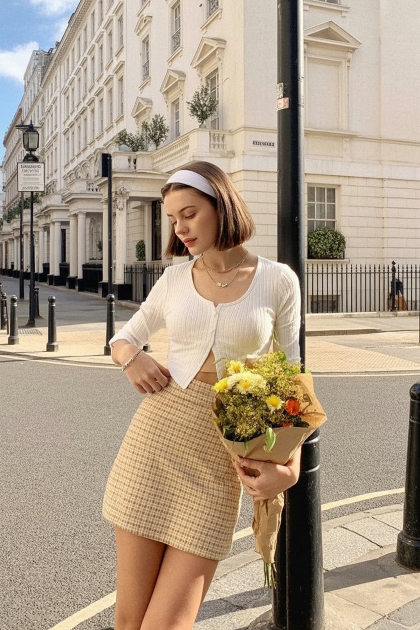 This outfit feels romantic without trying too hard. There’s a gentle, nostalgic charm to it—like spring flowers, handwritten notes, and slow walks through quiet streets.