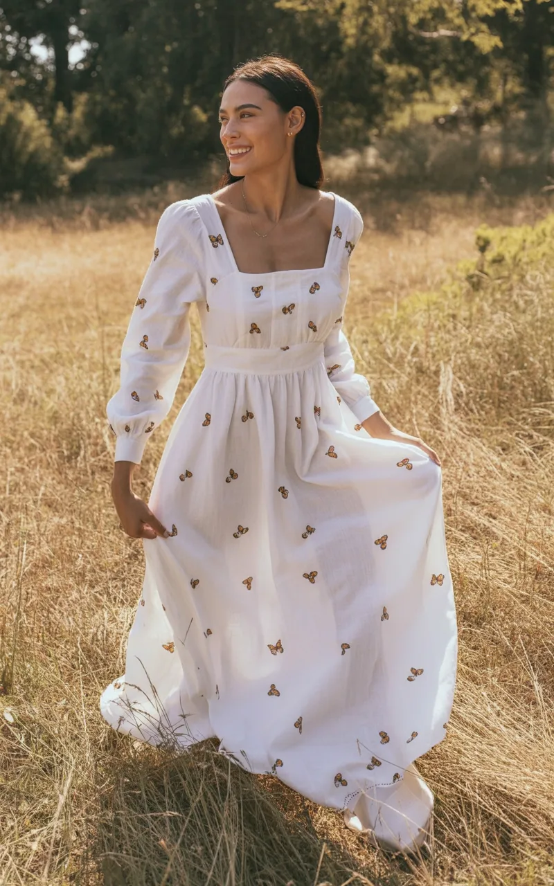 This dress feels like summer slowed down in the most beautiful way. The full skirt, soft embroidery, and long sleeves create a look that’s feminine, airy, and quietly dramatic without being overwhelming. It has that dreamy quality so many women want when they think about modest dressing—something that feels special but is still wearable. In the world of modest summer outfits in 2026, pieces like this stand out because they bring romance into everyday style. It feels fresh, graceful, and a little storybook in the loveliest sense. If you’ve been craving an Inspiration aesthetic that feels gentle rather than trendy, this one absolutely delivers.
