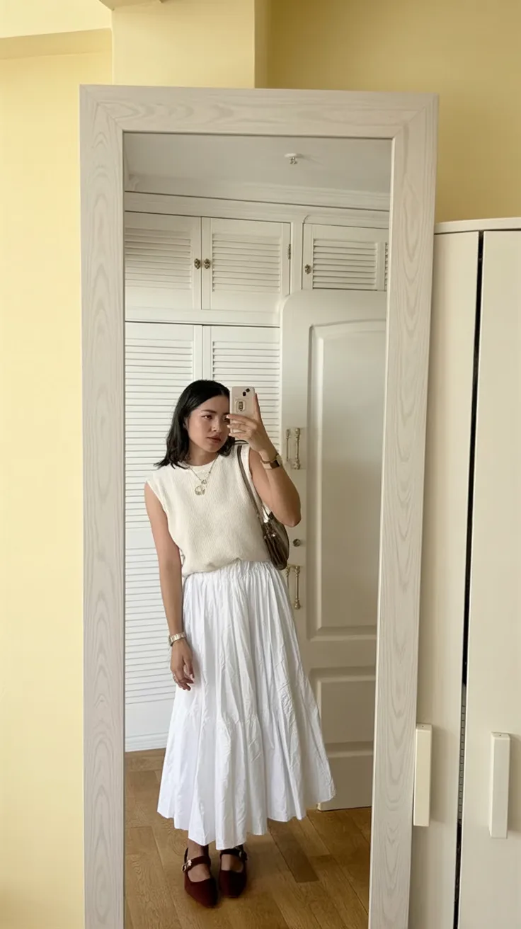20. Sleeveless Knit Top with a Full White Midi Skirt