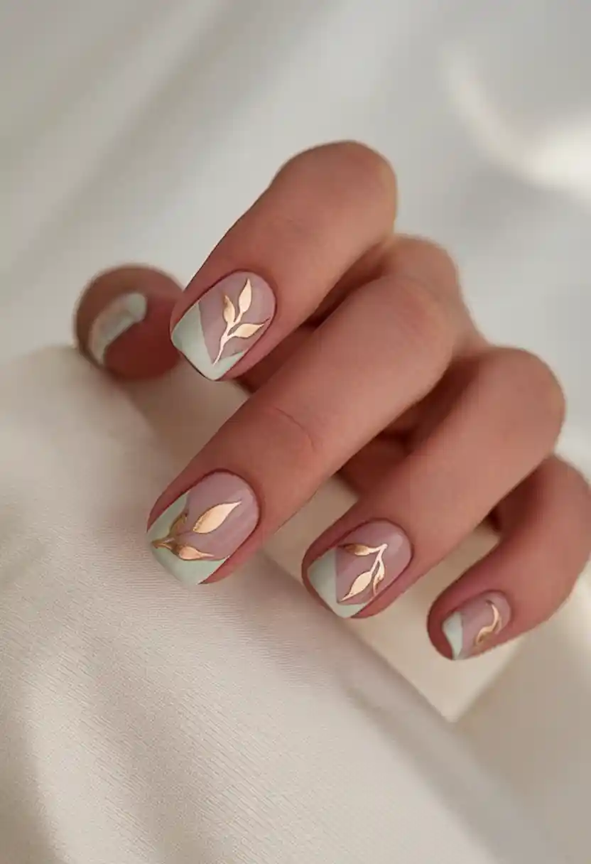 11. Mint and Mauve With Gold Leaves
