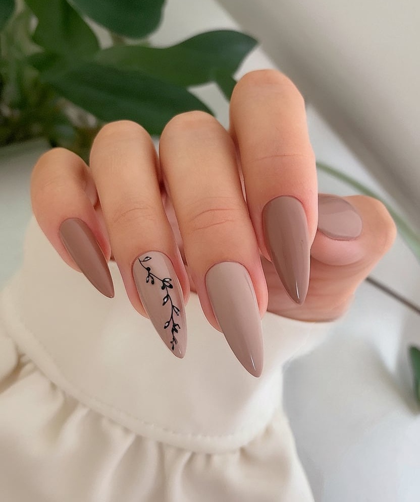 1. Soft Mocha Leaves on Almond Tips