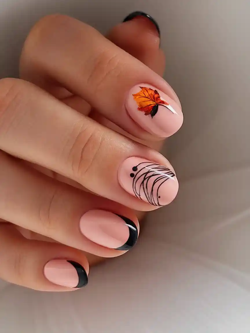 It is very suitable to use this look on short natural nails or gel short styles, suggesting a touch of playfulness, but is completely fall ready. It is easy to maintain and not seen often, which makes it a good way to express creativity or simply a way to spice up your autumn look.