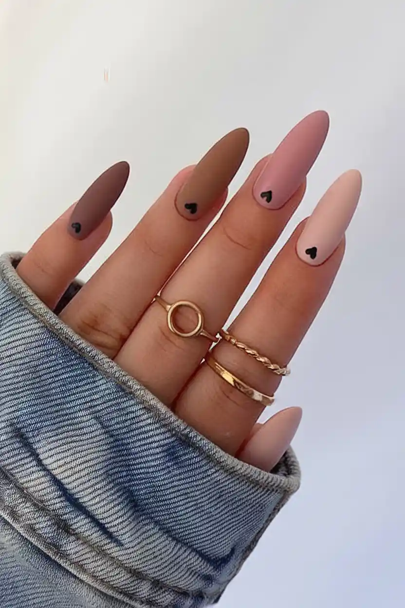 5. Matte Ombre With Tiny Hearts
