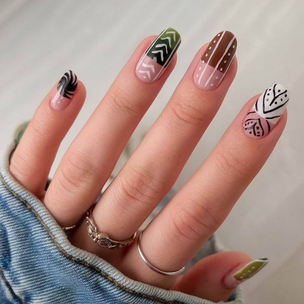 And it, of course, is an artistic twist on usual fall color schemes in case you prefer gel almond nails or acrylic short styles. It suits perfectly the girls as they wish their nails had a bit of story to tell; it is colorful, imaginative, and adorable.