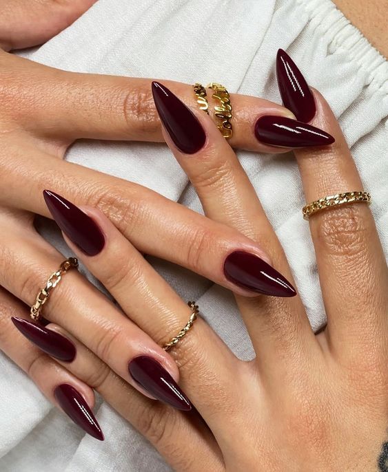 Dark, vampy nails are always in style for fall, and this deep burgundy design is both elegant and edgy. The glossy finish enhances the rich color, making it perfect for those who want a bold and dramatic look. This fall acrylic design is ideal for special occasions or a night out.