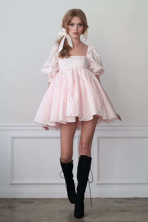 24. Whimsical Pink Baby Doll Dress with Puffy Sleeves
