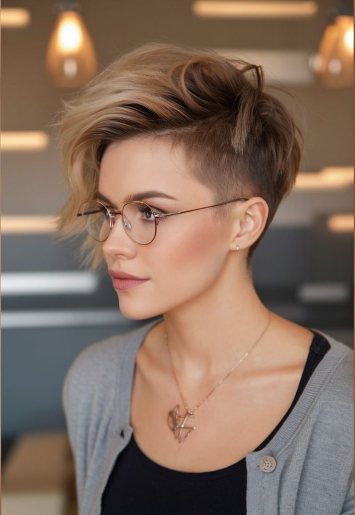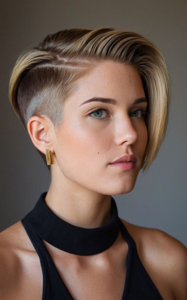 Blending the boldness of an undercut with the elegance of a bob, this pixie is a showstopper. The longer top layers offer plenty of styling options, while the closely cropped sides give it a sleek, modern edge. This hairstyle works especially well for women with thick hair, as it reduces bulk and enhances the overall silhouette. It’s also a flattering choice for a round face, elongating the features.