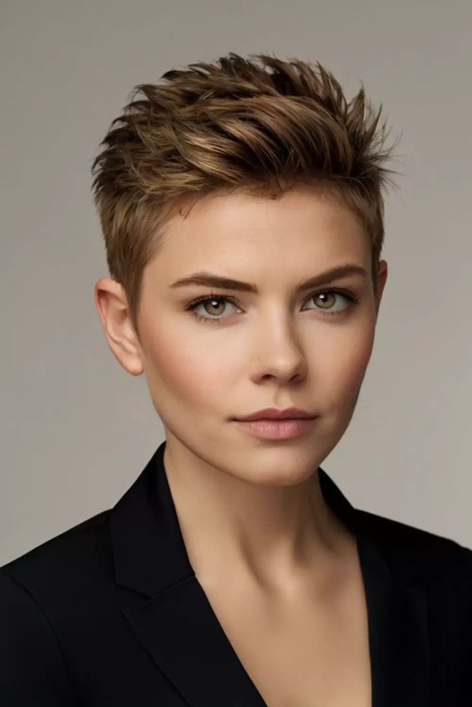 Styling requires a small amount of strong-hold gel or wax to define the spikes. Pair this hairstyle with minimal makeup and bold accessories to let the haircut take center stage. It’s an ideal look for those with a confident and adventurous spirit.
