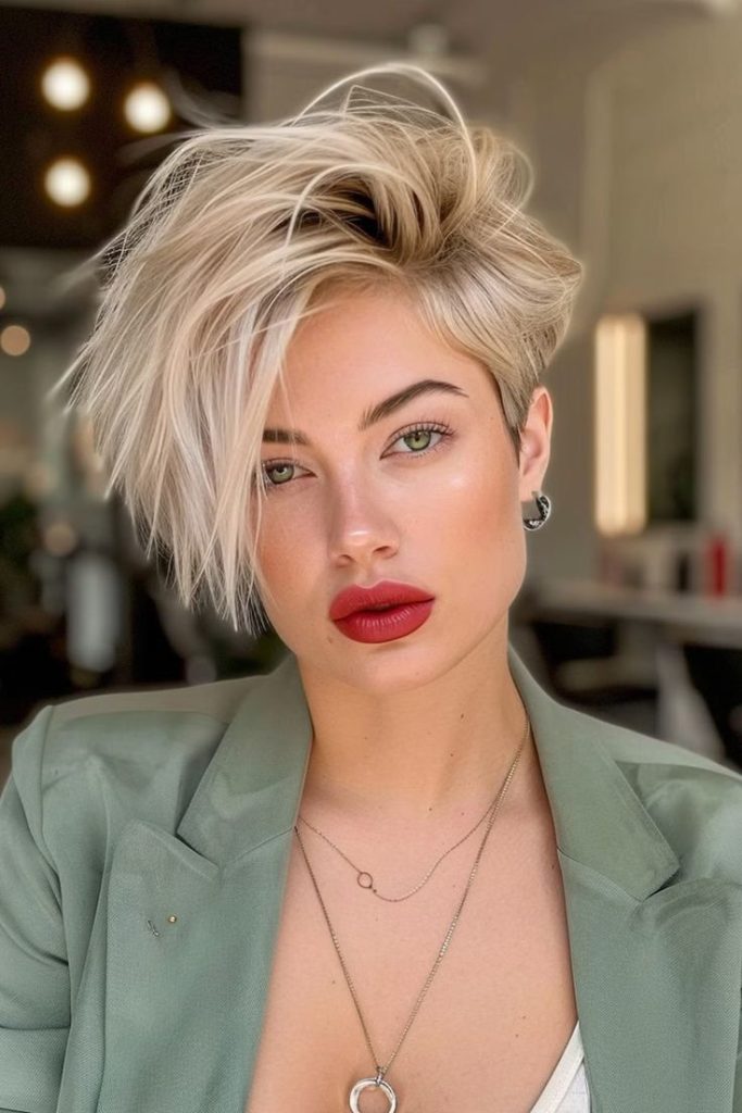 This edgy platinum pixie is designed for women who love making bold style statements. The sharp, choppy layers give it a modern and rebellious edge, making it a great choice for women in their 30s and 40s. The platinum shade adds an extra layer of sophistication, while the textured finish keeps the style dynamic.
