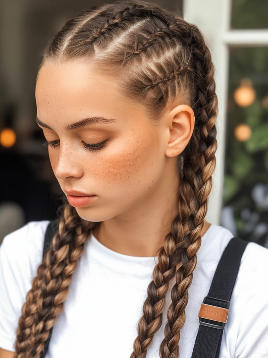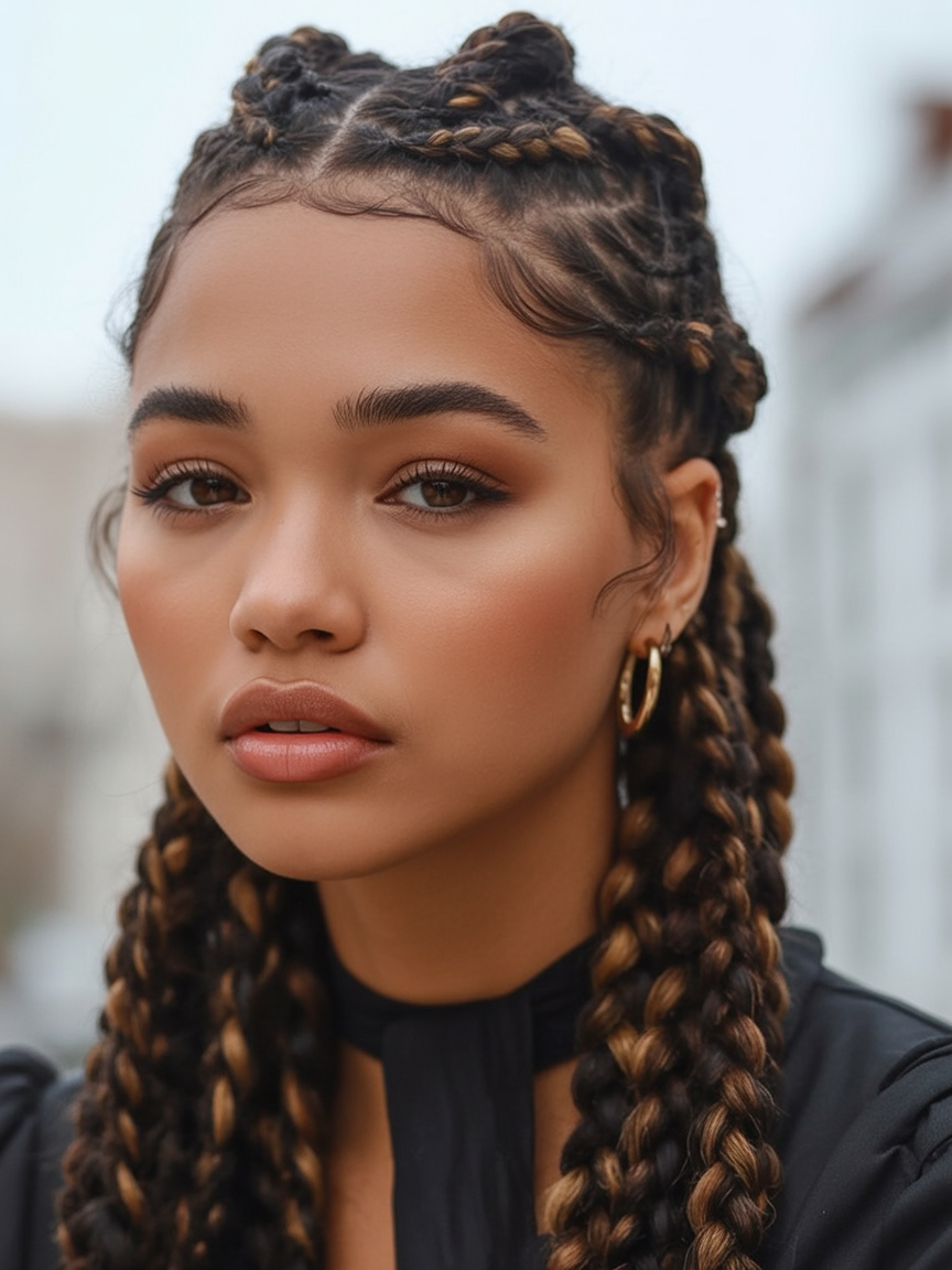 These twin braids are clean, bold, and just a little bit nostalgic—in the best way. The crisp lines and smooth finish give off a youthful, confident vibe that feels playful but still put-together.